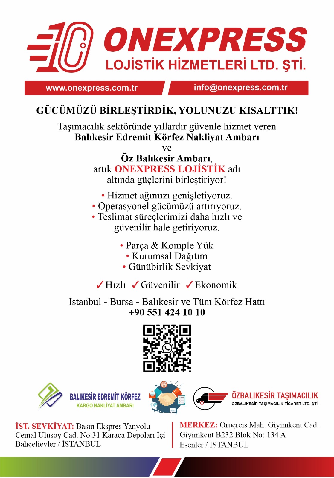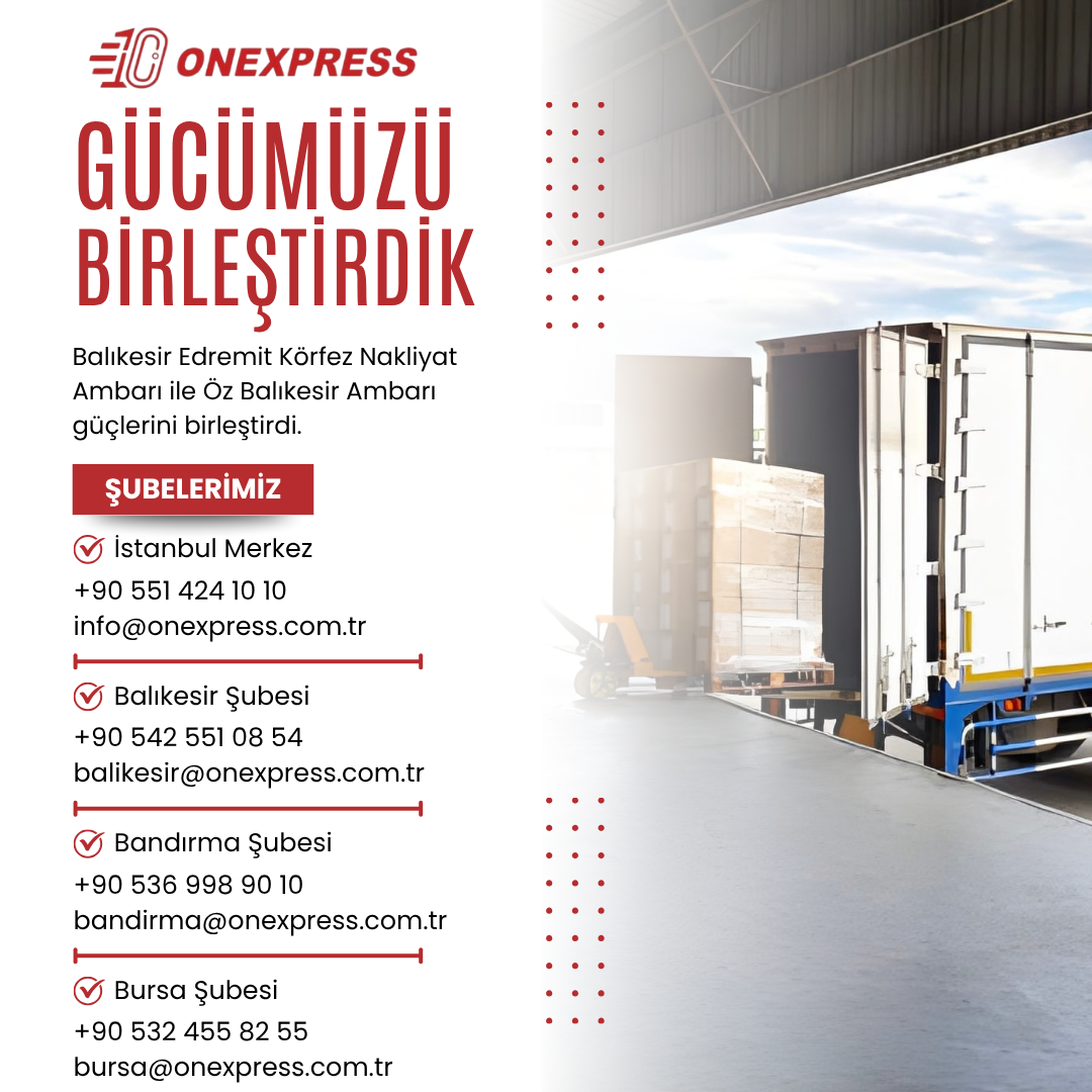 Onexpress Lojistik, sektörde uzun yıllar boyunca güvenilirliği, tecrübesi ve hizmet kalitesiyle tanınan Balıkesir Edremit Körfez Nakliyat Ambarı ile Öz Balıkesir Ambarının güçlerini birleştirmesiyle kurulmuş yeni ve güçlü bir lojistik markasıdır.